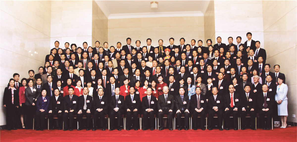 國務院原總理溫家寶同志在十一屆全國人大二次會議期間與湖北省代表團代表合影