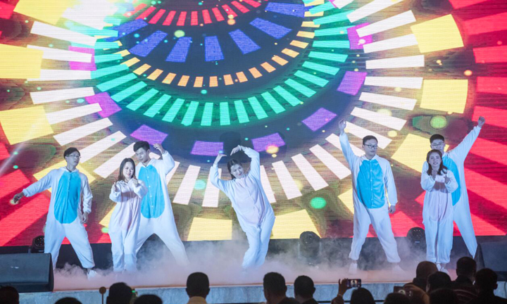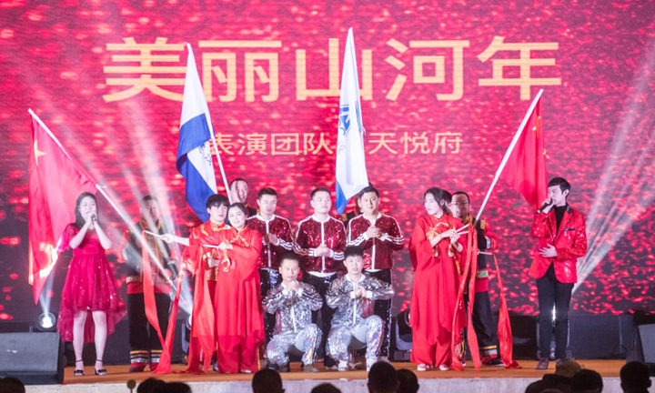 晚宴環(huán)節(jié),精彩紛呈的文藝節(jié)目與激動人心的抽獎活動交替進(jìn)行,現(xiàn)場一派歡樂祥和的氣氛。熱鬧喜慶的《美麗山河年》開啟新年新篇,情意綿綿的《新白蛇傳》讓來賓贊不絕口,西南女團(tuán)的勁歌熱舞令觀眾大飽眼福,飽含深情的《歌唱祖國》表達(dá)了對祖國母親的無限敬意……