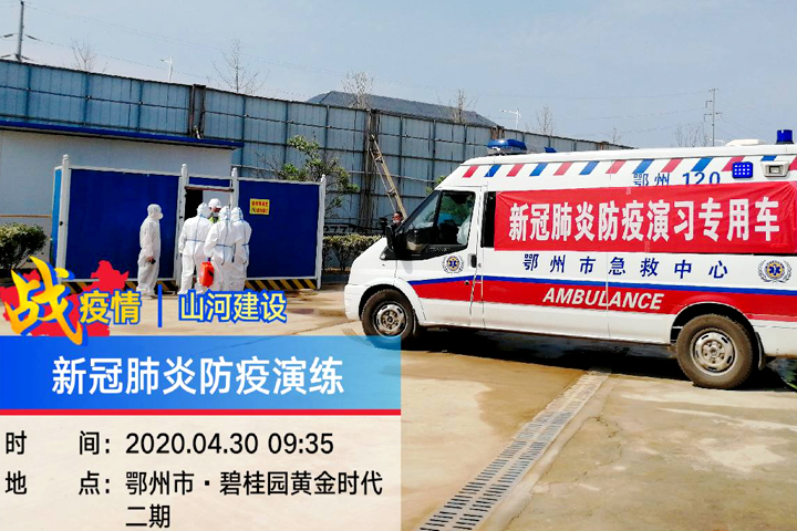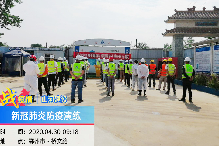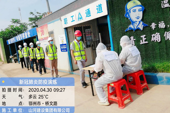 4月30日,山河建設(shè)集團(tuán)項(xiàng)目管理公司承建的鄂州碧桂園黃金時(shí)代項(xiàng)目施工現(xiàn)場(chǎng),集團(tuán)攜手鄂鋼醫(yī)院開(kāi)展的新冠肺炎防疫聯(lián)合演習(xí)在這里進(jìn)行。
