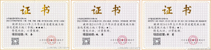 近日,山河建設(shè)集團(tuán)江蘇公司三喜臨門,公司承建的2014-67號(hào)地塊(中駿柏景灣)、2012-59號(hào)地塊(中駿金水灣)、亞琦萬(wàn)貿(mào)中心(二期)二標(biāo)段三項(xiàng)工程榮獲“2019年江蘇省建筑施工標(biāo)準(zhǔn)化星級(jí)工地”稱號(hào)。