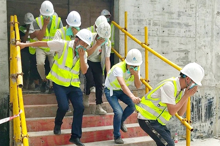 活動中,工程人員健康檢測、啟動宣告儀式、消防知識宣貫、緊急逃生演練、應(yīng)急滅火實操、急救知識講解等環(huán)節(jié)依次進(jìn)行。