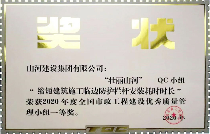 9月26日,在安徽合肥舉行的2020年度全國市政工程建設(shè)優(yōu)秀QC小組成果交流會上,山河建設(shè)集團云南(廣西)公司遠洋彩虹天地商業(yè)廣場項目“壯麗山河”QC小組發(fā)布的“縮短建筑施工臨邊防護欄桿安裝耗時時長”成果以小組第一名的成績榮獲“2020年度全國市政工程建設(shè)優(yōu)秀質(zhì)量管理小組一等獎”。這也是云南(廣西)公司第二次獲此殊榮。