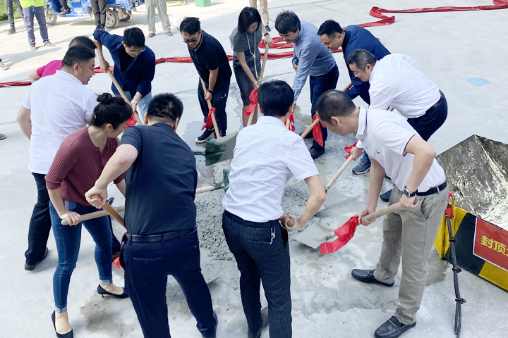 儀式上,各方代表共同揮動鐵鍬,完成最后一方混凝土澆筑,標志著該項目主體工程正式封頂,為下一階段的施工打下良好基礎。