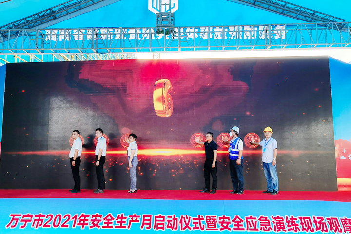 隨后,出席啟動(dòng)儀式的領(lǐng)導(dǎo)依次上臺(tái),共同觸摸大屏幕,宣告萬(wàn)寧市安全生產(chǎn)月活動(dòng)正式啟動(dòng),拉開(kāi)了全市安全生產(chǎn)月系列活動(dòng)的序幕。