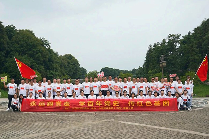 為慶祝中國共產(chǎn)黨成立100周年,6月26日,山河建設集團江西公司組織機關黨員員工70余人來到南昌灣里金峽谷風景區(qū),開展了以“永遠跟黨走、學百年黨史、傳紅色基因”為主題的紅色團建拓展活動。