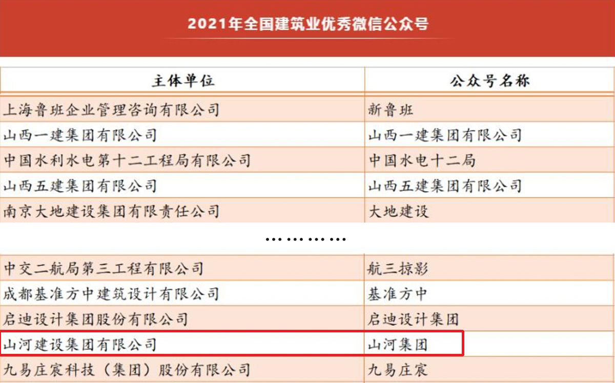 山河集團(tuán)公眾號再次獲評“全國建筑業(yè)優(yōu)秀微信公眾號”