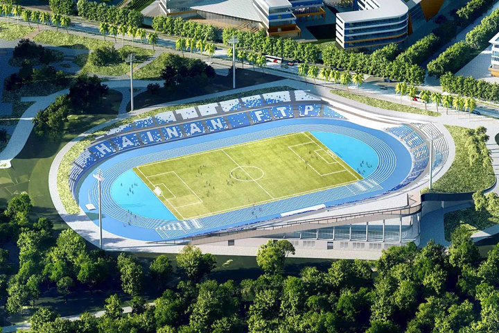 海南公司承建的試驗區(qū)體育場項目是園區(qū)的重要組成部分,總用地面積約5.48萬平方米,建筑面積5307平方米,采用裝配式施工。體育場建筑層數(shù)為地上二層,總高度24米,并新建室外運(yùn)動場1座(含400米標(biāo)準(zhǔn)競賽場地22000平方米)。