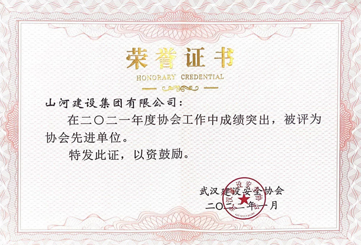 山河集團(tuán)獲評(píng)2021年度武漢建設(shè)安全協(xié)會(huì)工作先進(jìn)單位