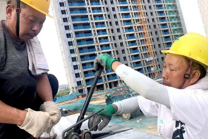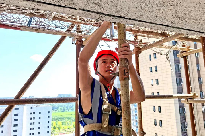 ▲手腕翻轉(zhuǎn),編織樓宇“筋骨”