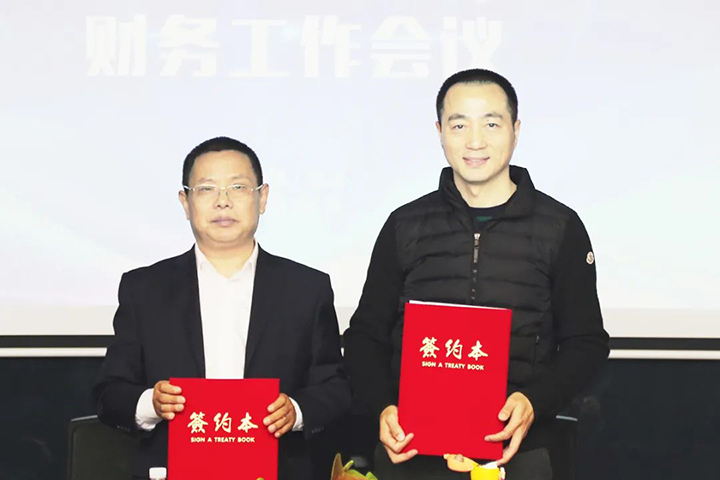 控股集團總裁李洪和李先寶簽訂財務團隊年度目標責任狀。李先寶和融資及核算監(jiān)管、稅管、資管業(yè)務負責人簽訂年度目標責任狀。